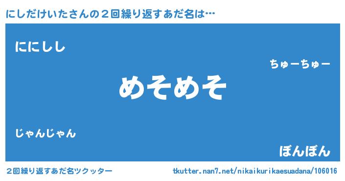 | 意味不明あだ名 | 『自称にしだけいた』 |