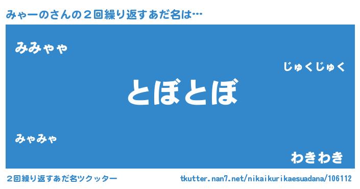 | 欧米人風あだ名 | 『みゃーの・ステッグマイヤー』 |