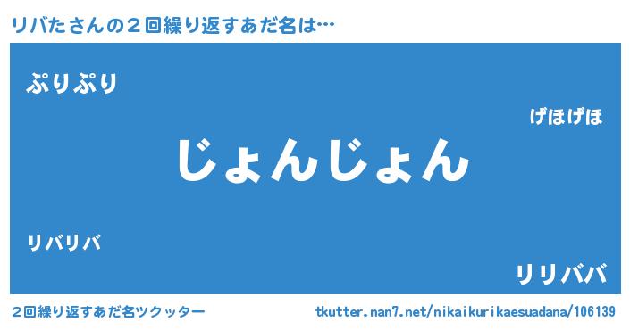 | 男性向けラノベタイトル風あだ名 | 『この素晴らしい世界にリバたを!』 |
