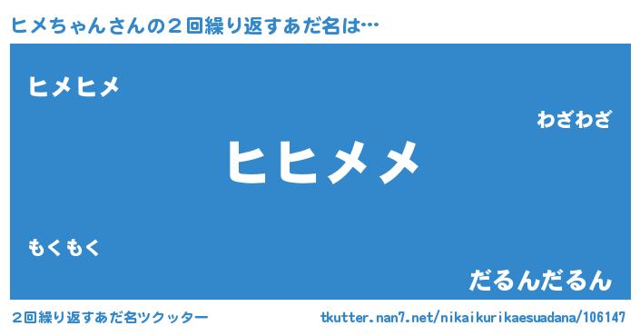 | ファンタジー風あだ名 | 『エターナルヒメチャンー』『ヒメフェル』 |