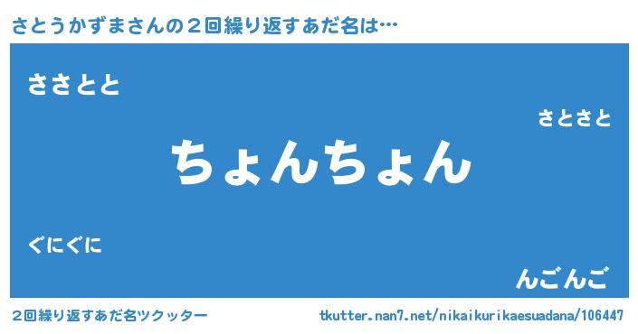 | 恥ずかしいあだ名 | 『さとっちょ』『プリティーさとうかずま』 |