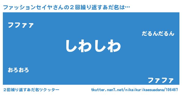 | 意味不明あだ名 | 『住所不定無職ファッションセイヤ(91歳)』 |