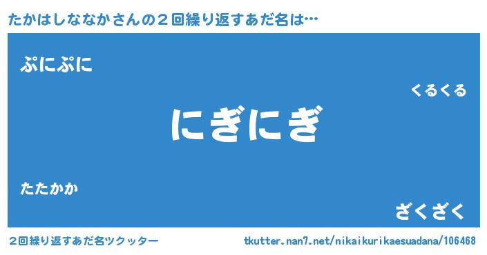 | ポケモン風あだ名 | 『ヒタカハシナナカ』『タックウザ』 |