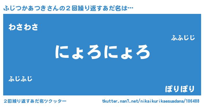 | 女子向けラノベタイトル風あだ名 | 『ふじつかあつきの卵を拾いまして』 |