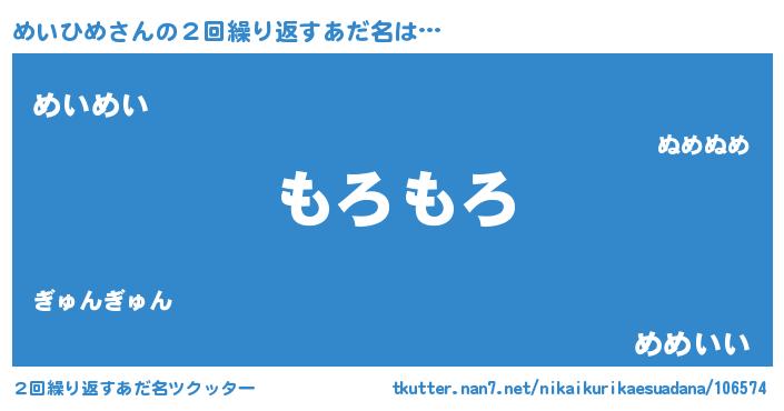 | 男性向けラノベタイトル風あだ名 | 『Re:めいひめから始める異世界生活』 |