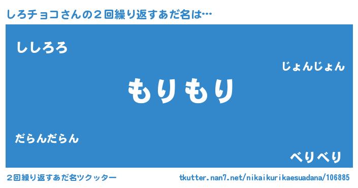 | 意味不明あだ名 | 『自称しろチョコ』『永久保存しろチョコ』 |