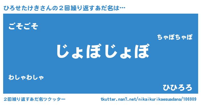 | ヘコむあだ名 | 『ひろせたけき(笑)』『レバニラ』 |