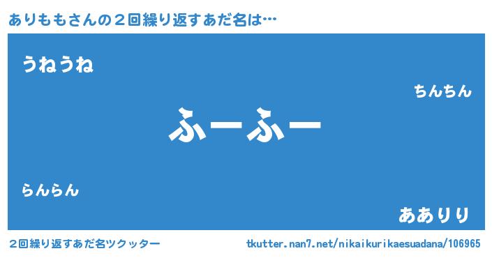 | 欧米人風あだ名 | 『ダニエルありもも』『ウサインありもも』 |