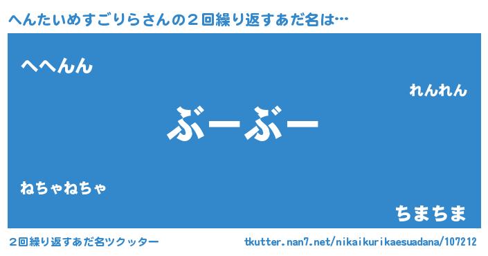 | 欧米人風あだ名 | 『ダニエルへんたいめすごりら』 |