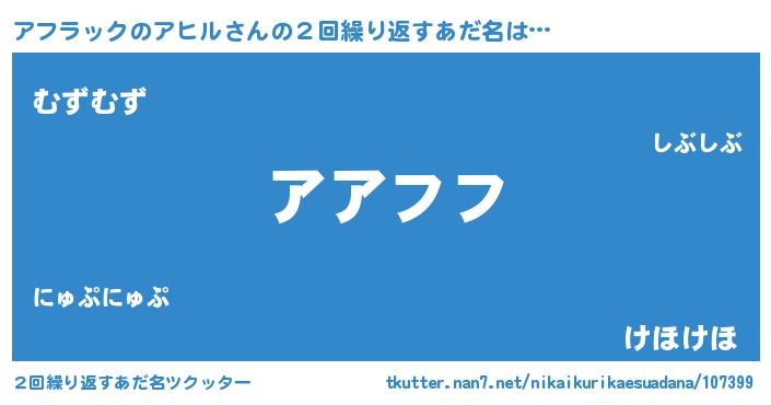 | ファンタジー風あだ名 | 『エターナルアフラックノアヒルー』 |
