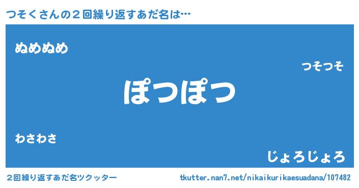 | ポケモン風あだ名 | 『ツックウザ』『ヒツソク』 |