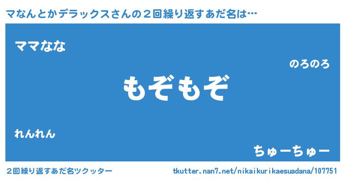 | 男性向けラノベタイトル風あだ名 | 『Re:マなんとかデラックスから始める異世界生活』 |
