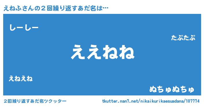| 意味不明あだ名 | 『えねふフォーエバー』『ペロリンえねふ』 |