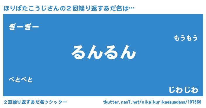 | ヘコむあだ名 | 『ほりばたこうじ(震え声)』『ほり太郎』 |