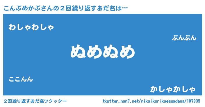 | 男性向けラノベタイトル風あだ名 | 『こんぶめかぶの嫁は女の子じゃないと思った?』 |