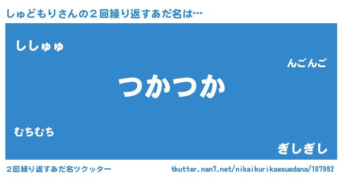 | 欧米人風あだ名 | 『しゅどもり・ステッグマイヤー』 |