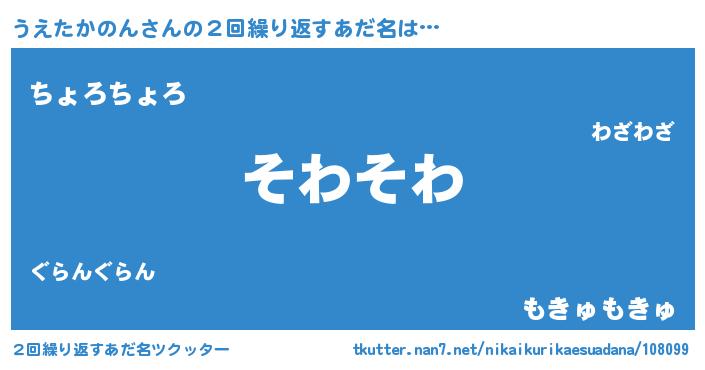 | 意味不明あだ名 | 『住所不定無職うえたかのん(56歳)』 |