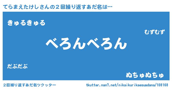 | ヘコむあだ名 | 『てらまえたけし(小並感)』『てら太郎』 |