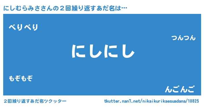 | 男性向けラノベタイトル風あだ名 | 『にしむらみさの憂鬱』 |