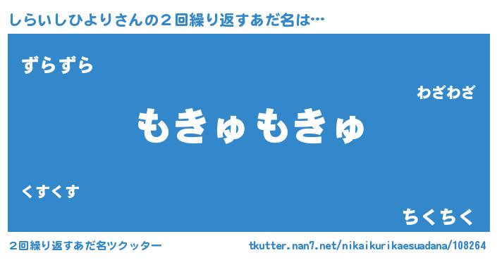 | 男性向けラノベタイトル風あだ名 | 『Re:しらいしひよりから始める異世界生活』 |