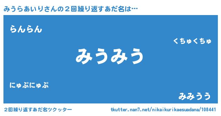 | ファンタジー風あだ名 | 『ミウフェル』『ユリミウヴァット』 |