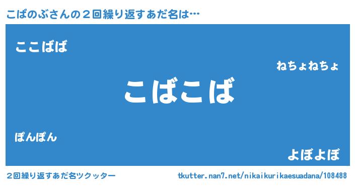 | ファンタジー風あだ名 | 『コバフェル』『エターナルコバノブー』 |
