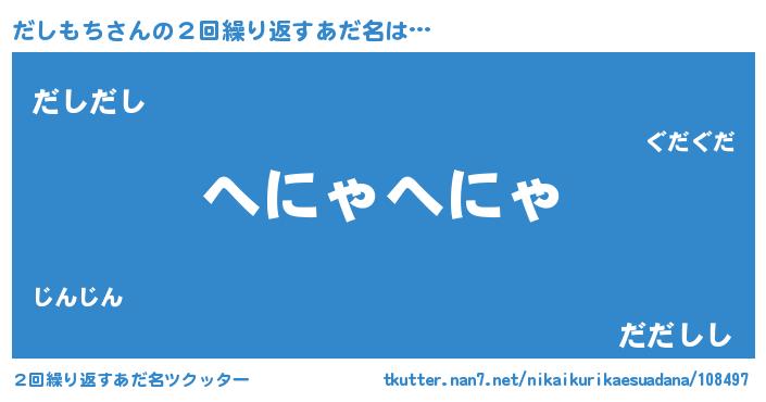 | ヒーロー風カッコイイあだ名 | 『慈愛の使者だしもち』『ネオダシモチ』 |