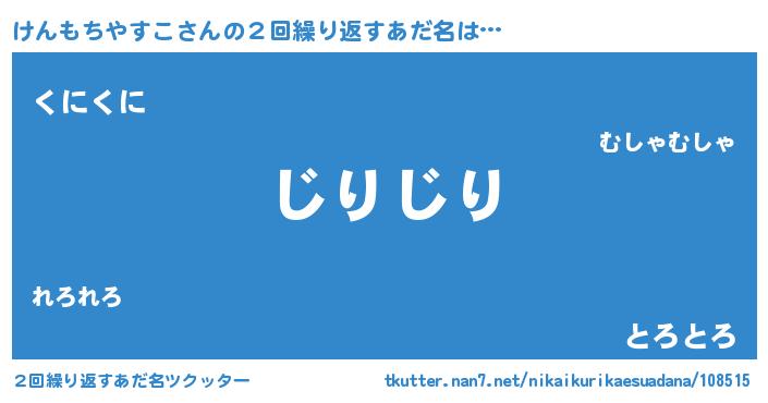| ヘコむあだ名 | 『けんもちやすこ(遠い目)』『けんにゅー』 |