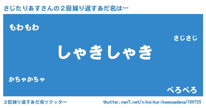 | 意味不明あだ名 | 『住所不定無職さじたりあす(65歳)』 |