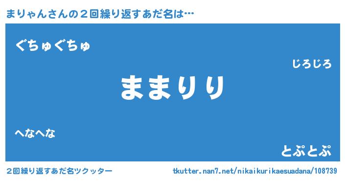 | 男性向けラノベタイトル風あだ名 | 『やはりまりゃんの青春ラブコメはまちがっている 』 |