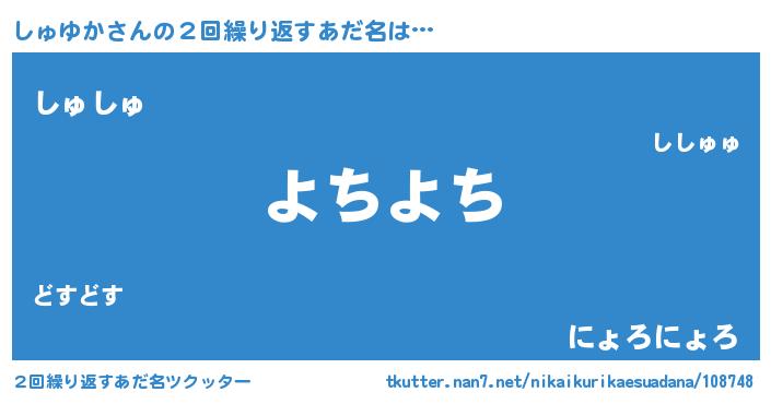 | 男性向けラノベタイトル風あだ名 | 『シュユカスレイヤー』『しゅゆかの憂鬱』 |