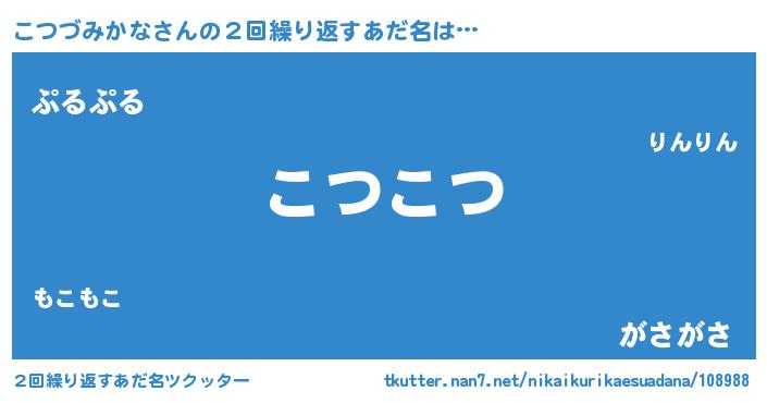 | ヘコむあだ名 | 『こつふぇ~』『こつづみかな(爆)』 |