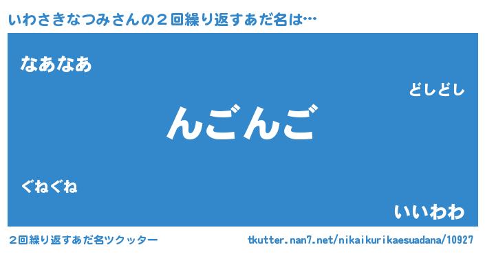 | 男性向けラノベタイトル風あだ名 | 『いわさきなつみ~年齢イコール彼女いない歴の魔法使い~』 |
