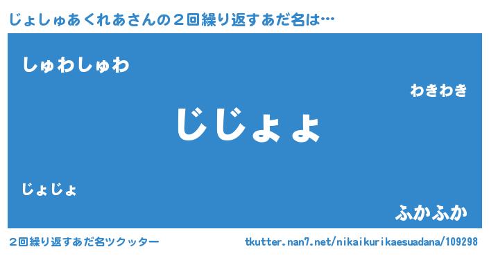 | 欧米人風あだ名 | 『じょしゅあくれあクリステル』 |