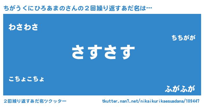 | 女子向けラノベタイトル風あだ名 | 『ちがうくにひろあまのが死なない童話 林檎のちがうくにひろあまのの診療簿』 |