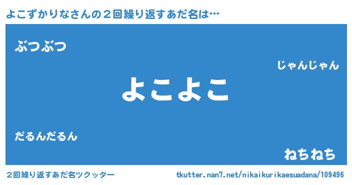 | 恥ずかしいあだ名 | 『プリティーよこずかりな』『よこっちょ』 |