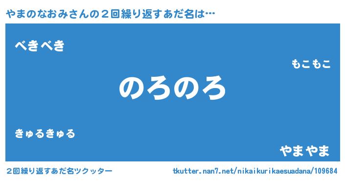 | 欧米人風あだ名 | 『ウサインやまのなおみ』 |