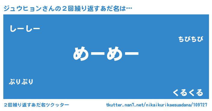 | 意味不明あだ名 | 『自称ジュウヒョン』 |