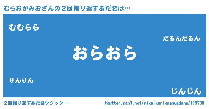 | 意味不明あだ名 | 『とにかく怪しいむらおかみお』 |