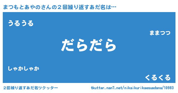 | ヘコむあだ名 | 『まつ太郎』『まつもとあやの(笑)』 |