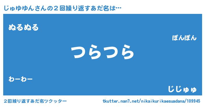 | 男性向けラノベタイトル風あだ名 | 『じゅゆゆんに滅ぼされるだけの簡単なお仕事です』 |