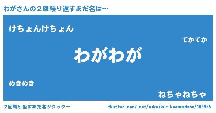 | ポケモン風あだ名 | 『ワガチュウ』『ゼニワガ』『ヒワガ』 |