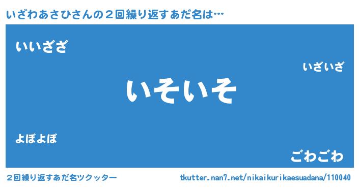 | ポケモン風あだ名 | 『ヒイザワアサヒ』『イザワダネ』 |
