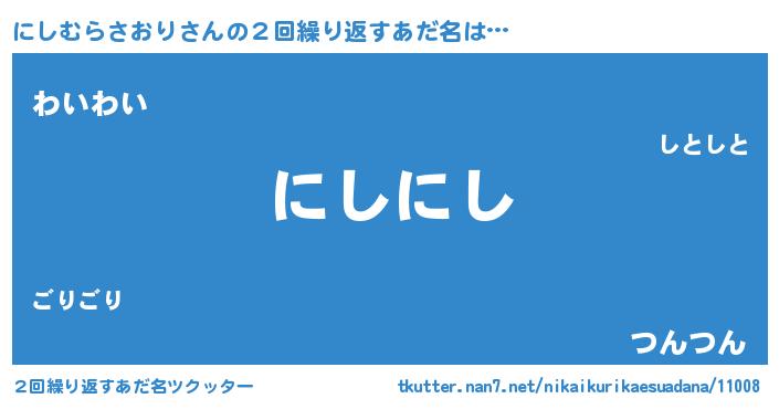 | ヘコむあだ名 | 『にしにー』『にしむらさおり(笑)』 |