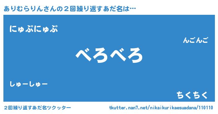 | ヘコむあだ名 | 『ありを』『ありむらりん(遠い目)』 |