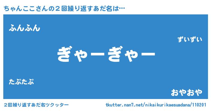 | 意味不明あだ名 | 『永久保存ちゃんここ』『自称ちゃんここ』 |