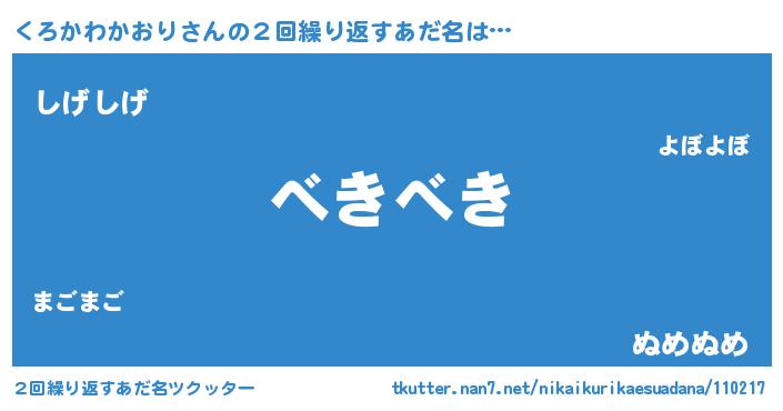 | ヘコむあだ名 | 『くろっ子』『くろかわかおり(震え声)』 |
