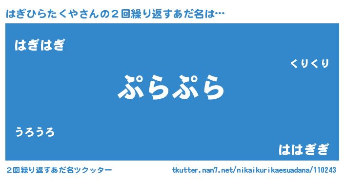 | 肩書あだ名 | 『はぎひらたくや助教授』 |