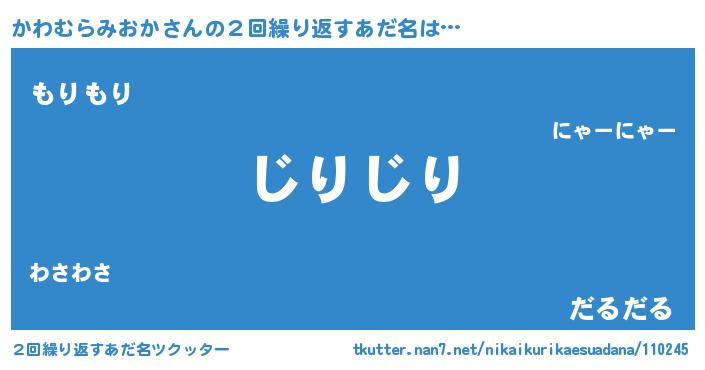 | 意味不明あだ名 | 『住所不定無職かわむらみおか(50歳)』 |