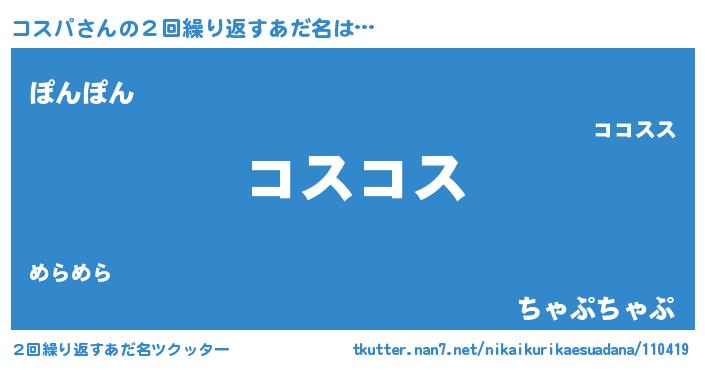 | ヒーロー風カッコイイあだ名 | 『スーパーコスパ』『天空の使者コスパ』 |